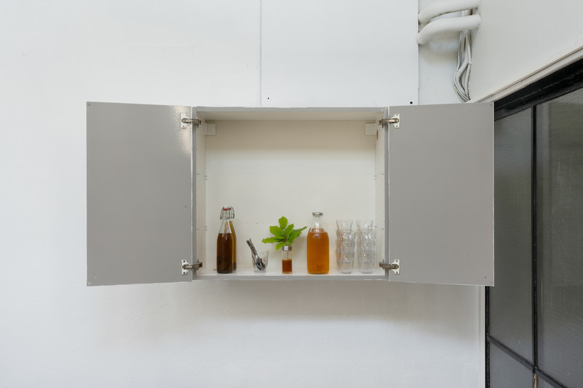 Selection of drinks depending on the occasion and weather, made from the hedges surrounding Kunstnernes Hus, Mathew Lacosse, 2024, Kunstnernes Hus. Dokumentasjon av Lea Stuedahl.