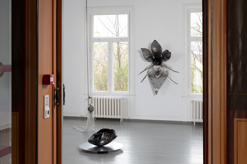 Madelen Isa Lindgren (f. 1990, Fredrikstad) arbeider med skulptur i metall, glass og lær. Gjennom bearbeidelse av materialene og imitasjon av naturens egne strukturer utvikler hun skulpturelle strategier for overlevelse og omsorg. Arbeidene fremstår ofte som øyeblikk i transformasjon – frosne stadier i en syklisk tid, der former som kokonger, skjold og tentakler artikulerer midlertidige lag av eksil og forsvar. I disse konstruksjonene forenes materialenes iboende sårbarhet og styrke i hybride allianser, som både skjermer og åpner for nye forbindelser mellom kropp, omgivelser og det ukjente.